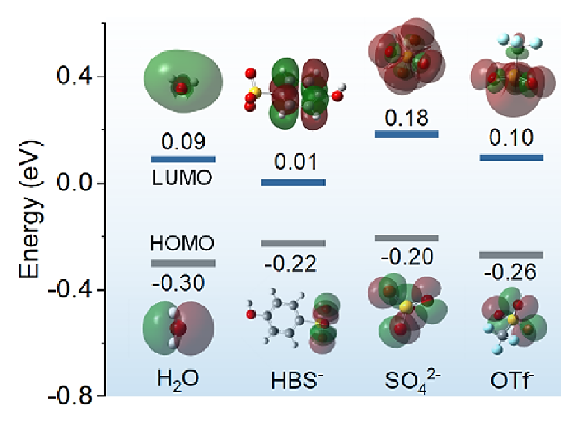 通過計(jì)算陰離子表面的靜電勢(shì)(ESP)分布來(lái)量化陰離子的極性(API),分析與水分子的結(jié)合能力,輔助優(yōu)化電解液。